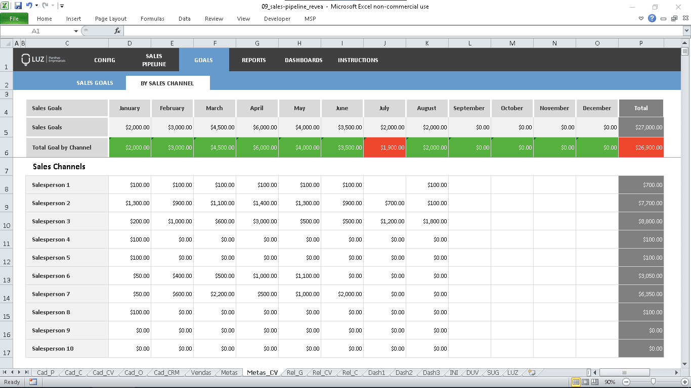 Sales Pipeline Management Spreadsheet Template is a great way to control your sales pipeline and sales person results. Easy, simple and with great dashboards.